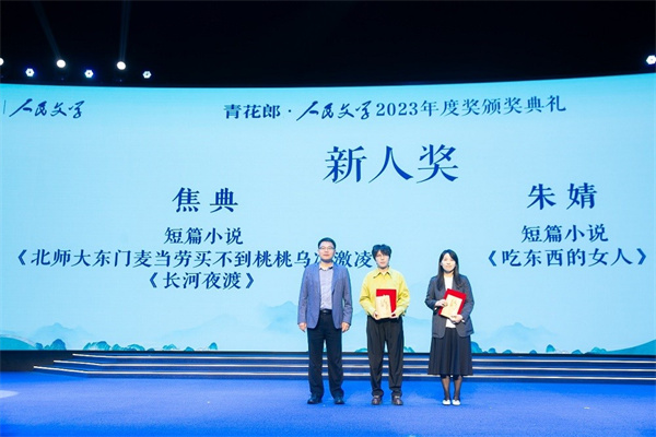4月13日,2023年人民文学奖颁奖典礼在四川泸州举行,共颁出特别奖、长篇小说奖、中篇小说奖、短篇小说奖、散文奖、诗歌奖、非虚构作品奖、新人奖、翻译贡献奖等。17位获奖者中,南京作家余一鸣《十竹斋密码》、朱婧(短篇小说《吃东西的女人》)分别获得长篇小说奖和新人奖。
