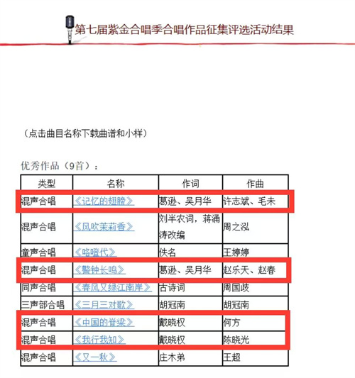 近日,江苏省第七届紫金合唱季合唱作品征集评选结果揭晓,由南京市音协组织创作的《记忆的翅膀》等四首歌曲获评优秀作品。