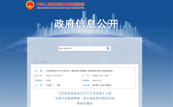 近日,文化和旅游部办公厅发布了关于举办第十六届全国声乐展演暨第二届全国优秀交响乐作品展演的通知。