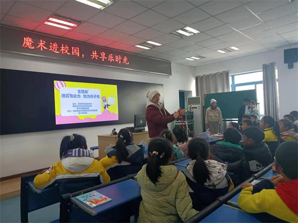 1月5日下午,“艺栖来·栖霞有魔力”——魅力燕子矶活动在南京晓院附小举办。本次活动由南京市杂技家协会、栖霞区文学艺术界联合会、燕子矶街道妇联主办,南京晓庄学院附属小学教育集团、燕子矶社区承办。南京市杂技家协会会员彭湘琪、陆鹏,南京师范大学深蓝魔术社社长善珽凯走进校园,通过现场表演、互动体验等方式,让孩子们近距离感受魔术艺术的独特魅力。
