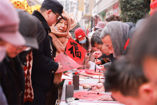 本次活动以“民俗闹新春·非遗过大年”为主题,共持续三天,包括文艺演出、非遗体验、年货大集等多项内容,让群众在活动中感受中华优秀传统文化之美,享受新年的浓浓喜悦。启动仪式当天,南京市书法家协会的“主席天团”现场为市民朋友写春联、“福”字,用笔墨送上真挚的新春祝福。
