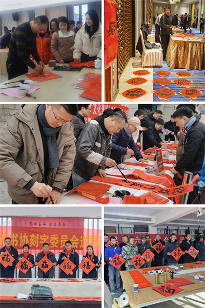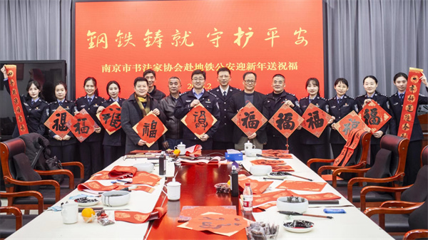 为深入贯彻落实党的二十大精神和习近平文化思想,坚持以人民为中心的创作导向,推进文化传承发展和繁荣兴盛,按照江苏省书法家协会和南京市文学艺术界联合会的工作安排,南京市书协积极开展“万福迎春”文化进万家书法志愿服务公益活动,组织动员全市书法家、书法工作者深入高铁、地铁、街区、商场等基层一线,走入环卫工人、公安民警等劳动者之中,开展了数百场形式多样、不同规模的亲民、惠民书法活动,极大丰富了市民的精神文化生活,更加凝聚了全市人民团结进取、奋发图强的强大精神力量。据不完全统计,春节前夕,南京广大书法工作者共送出“福”字、春联十多万份,繁华的街巷处处飘荡着浓浓的墨香,为古老的金陵增添了一份动人的春色!
