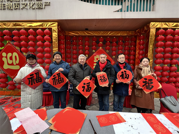 2月5日上午,在鼓楼区狮子桥步行街“龙腾迎盛世·狮舞闹新春”——2024南京市文联新春主题系列活动现场,书法家们冒着严寒为大家写“福”字、送春联。雪后的南京格外寒冷,一位市民看到书法家们冻红了双手,还在热心为大家服务,主动为书法家们送来热饮,让书法家们由衷感受到了双向奔赴的温暖。