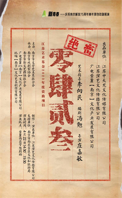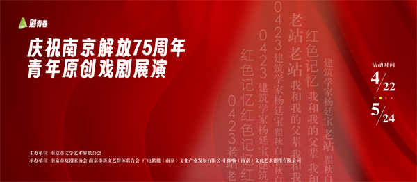 在南京解放75周年之际,在市委宣传部的指导下,由南京市文联主办,南京市戏剧家协会、南京市新文艺群体联合会、广电紫麓(南京)文化产业发展有限公司、抓嘛(南京)文化艺术创作有限公司承办的“剧青春——庆祝南京解放75周年青年原创戏剧展演”即将精彩启幕。6部戏剧作品将在紫麓雨花梦想剧场、星空剧场、江北新区红色广场、东南大学和南京艺术学院轮番上演。在4月22日—5月24日为期一个多月的时间里,还将陆续开展围炉点评、解读交流、观感体会等系列活动,着力搭建南京原创戏剧的展示平台、青年人才的交流平台以及人民群众精神文化生活的共享平台。