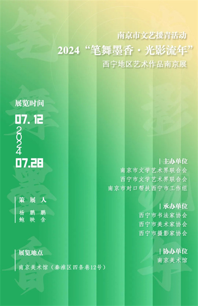 为深入贯彻落实习近平总书记关于加强和改进民族工作的重要思想和深化东西部协作的重要指示,进一步推动南京西宁两地文化艺术交流合作,实现文化艺术资源共享互补、增进文化认同,推进两地文化交融,共促两地文化繁荣发展。7月12日,由南京市文联、西宁市文联和南京市对口帮扶西宁市工作组共同举办的南京市文艺援青活动——2024“笔舞墨香·光影流年”西宁地区艺术作品南京展在南京美术馆开展。