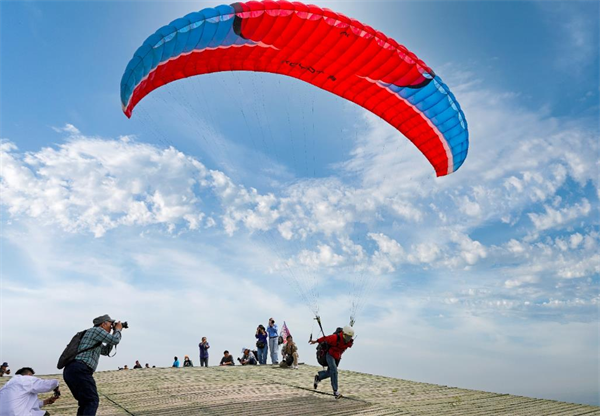 谁说乡村不够潮?九华的滑翔伞基地直接刷屏!长焦追拍“空中舞者”,俯拍视角下茶园如绿毯铺展,妥妥的大片既视感!