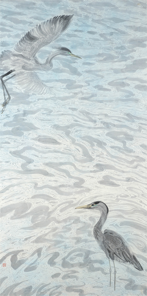 徐惠泉 《江畔新韵》 中国画 138×69cm
