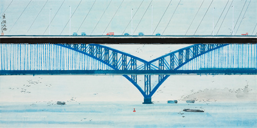 孙洪 《蓝调大桥》 中国画 67×135cm
