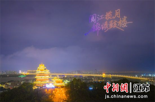 演出期间,无人机编队先后组合成鼓楼公园、紫峰大厦等图案