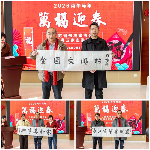 2月4日上午,2026丙午马年“万福迎春”——江苏省书法家协会送万福进万家活动走进江宁街道牌坊村。