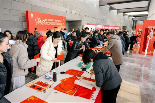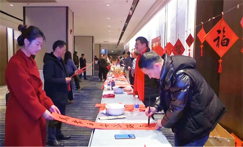 2月5日下午,在外商和港澳台商投资企业新春联谊会互动区,书法家们现场创作的各类马年书法“福”字,深受与会人员喜爱,春节楹联传统文化通过外商和港澳台商投资企业得到传播。