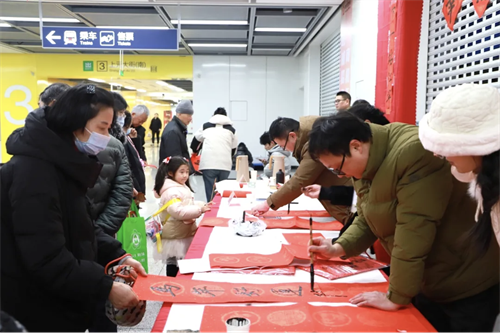 同日,在5号线东山地铁站,“茉莉花开 与宁共赏”春节文化惠民活动中,将地铁空间变为“文化长廊”,区书协的书法家们现场为乘客们写春联、送“福”字,马年的美好期许通过交通流量送到千家万户。