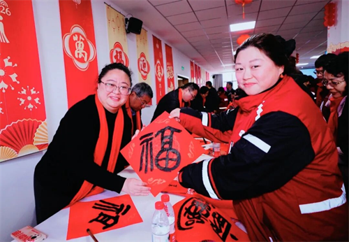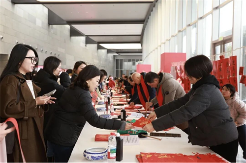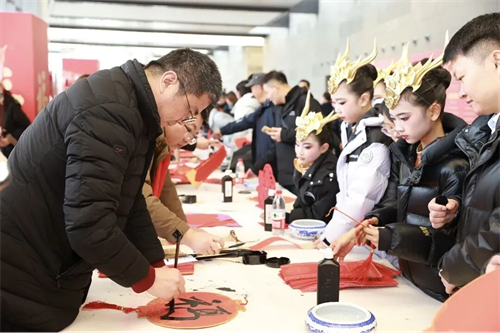 下午,在百家湖景枫中心广场,“翰墨飘香”与非遗展演交相辉映,市民们在体验地方剪纸等非遗项目的同时,也收获了现场书写的春联和“福”字。