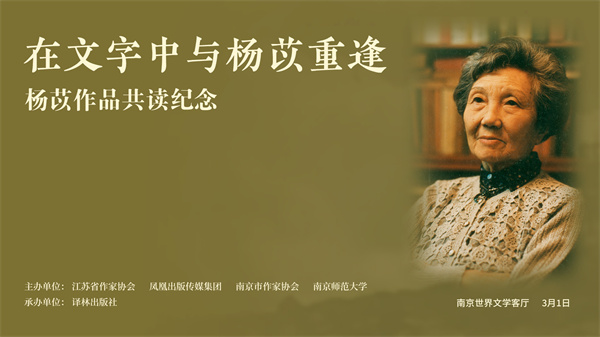 2023年1月27日晚8:30,著名翻译家、作家杨苡在南京鼓楼医院逝世,享年104岁。杨苡出生于1919年,是五四运动的同龄人,也是“自西南联大迈向广阔生活的进步学子”;是首创“呼啸山庄”译名并使该译本成为经典的重要翻译家,也是兼及诗歌、散文、儿童文学创作的勤勉写作者。她长居南京半个多世纪,与这座城市结下不解之缘,曾先后担任南京国立编译馆翻译委员、南京师院(今南京师范大学)外文系英语教师。正是在南京,她完成了《呼啸山庄》的翻译与出版,畅销至今。今年1月,由杨苡口述、余斌教授撰写、凤凰出版传媒集团旗下译林出版社推出的《一百年,许多人,许多事:杨苡口述自传》一经出版就备受关注,追读她的自传成为普通读者怀念她的方式。她曾与我们同在南京的天空下,如今将化作一颗启明星,默默守护故土,照亮文林。这也是主办方选在南京世界文学客厅举办本场“共读纪念”的特别意义。
