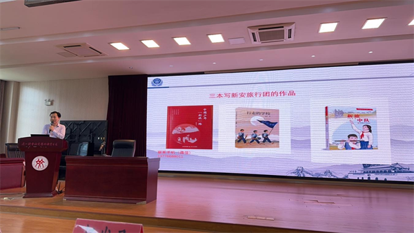5月14日下午,由江苏省作协、南京市作协共同举办的“茉莉花开”文学惠民讲座、“文学与宁同行”活动走进栖霞区初级实验中学尧化校区。江苏省报告文学学会副会长、南京市作协理事邹雷结合自己的长篇儿童小说《行走的学校》给该校近百名学生讲述了新安旅行团的事迹。