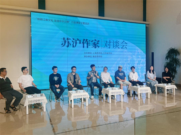 5月13日下午,上海市作协一行在南京参观考察了江宁织造博物馆和南京历代云锦博物馆。5月14日上午,高渊、杨发孟、王子带领苏沪两地50余位作家一同在南京世界文学客厅开展了“红色起点”赠书仪式和苏沪作家对谈活动。赠书仪式上,杨发孟代表江苏省作协对上海作者及参会的专家学者表示欢迎,王子代表南京市文联、南京市作协致辞;高渊代表上海市作协向江苏省作协表示感谢。在赠书环节,高渊分别向江苏省作协、南京市作协赠送“红色起点”文学书籍200余册。在苏沪作家对谈活动中,上海市作家血红、三盅、沉默的糕点、漫步云端、胡笛,江苏省作家雨魔、cuslaa、长缨、月落下弦夜、张守涛就文学发展问题进行讨论,针对创作过程中遇到的问题与参会作者进行了交流。参与本次活动的作家表示,通过本次苏沪作家对谈活动,对如何把“创新江南文化,发扬中华文明”融入文学创作有了更清晰的思路。