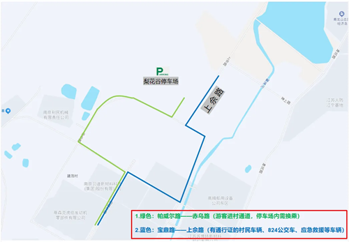 为保障大家的出行安全,端午假期期间如遇到车流高峰期,交警中队根据佘村村内车流量的情况实行临时交通管控(一般为上午10点左右至下午4点左右),进村游客车辆可从【帕威尔路--赤乌路】驶入梨花谷停车场内转乘接驳车进村,现场有路牌和交警引导。