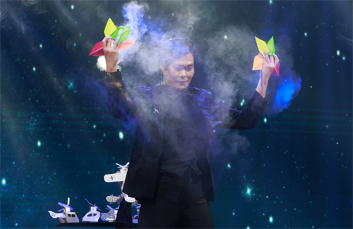 参加演出的不仅有2025江苏大学生魔术交流大会的优秀获奖作品,还有我省近年来在国内、国际杂技魔术赛场上屡创佳绩的精品力作。《纸飞机》《美式滑稽》《涟漪——蹬伞》《请随意打乱》《酷炫手彩》《虚实悖论》《化蝶》等精彩节目令人目不暇接。整场演出气氛热烈,高潮迭起。