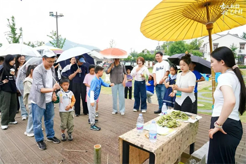 舞蹈在竹影婆娑中舒展,民乐在屋檐滴水间流淌,朗诵在巷口石径间回响……游客与村民在闲庭信步之间“偶遇”艺术之美,沉浸式感受节日文化的现代诠释。每一处场景都成为艺术发生的“现场”。据统计,活动期间吸引超1.5万人次参与,佘村以独特的艺术磁场,在端午节变身为一座流动的“艺术村落”。