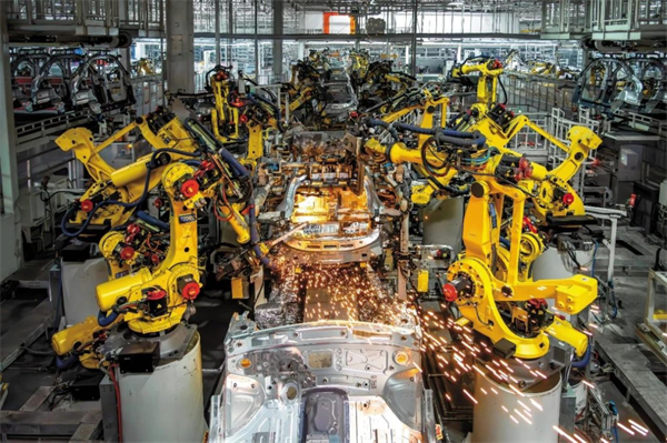 机器人焊接生产线 (李 吉 摄)摄于长城汽车泰州生产基地