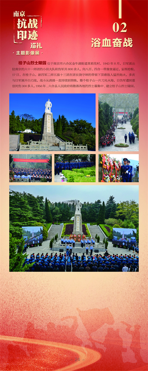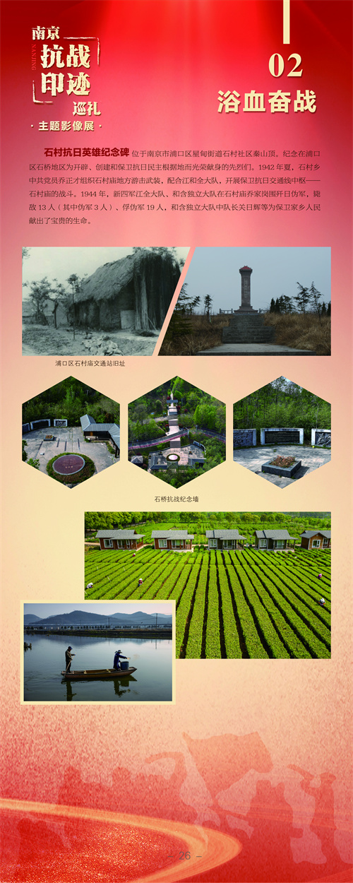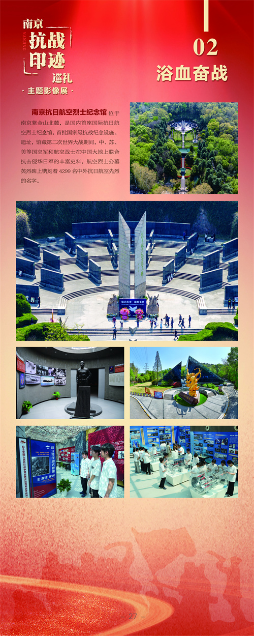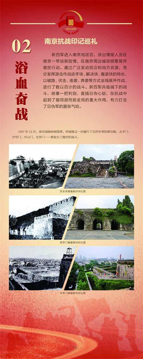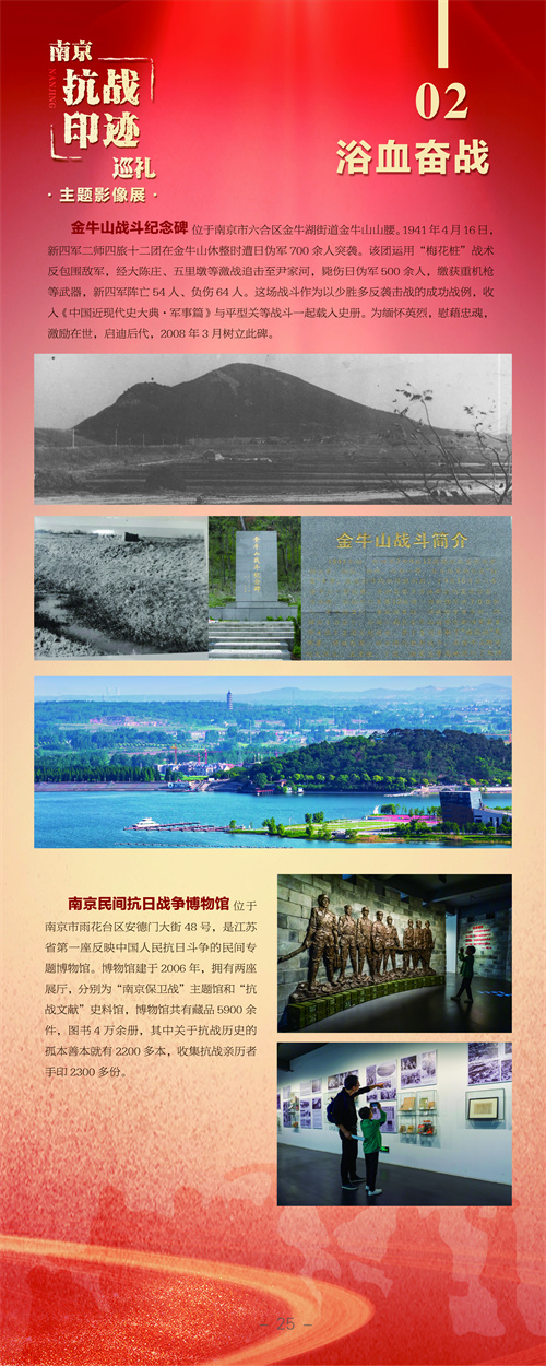 编者按:南京,是一座英雄的城市。巍巍钟山,见证了这座城市奋力抗战的烽火硝烟;滔滔大江,诉说着这座城市不畏强敌的英雄故事。在纪念中国人民抗日战争暨世界反法西斯战争胜利80周年之际,由南京市文联、南京市委网信办、南京市委党史办、南京市档案馆、雨花台烈士纪念馆联合主办,南京市摄影家协会、《金陵瞭望》杂志社承办的“南京抗战印迹巡礼”主题影像展在雨花台烈士纪念馆开展,用镜头寻访抗日印迹,缅怀抗日英烈,弘扬伟大抗战精神。