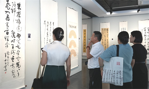 9月13日,由南京、宁波、廊坊、晋城、乌海、鞍山、通化、盐城、张家界和庆阳十市书法家协会共同主办的“墨舞新天——全国十城市书法篆刻联展”在南京美术馆开幕。