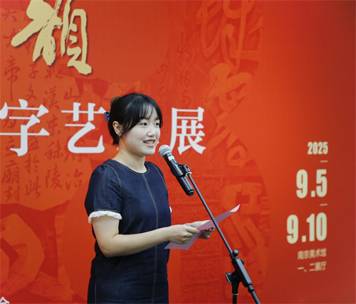 南京市书法家协会刻字委员会主任赵滨介绍展览相关情况