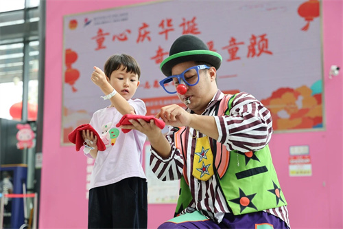 活动现场,节日装饰与童真笑语相映成趣,构成一幅温暖且治愈人心的温馨画面。滑稽小丑手持五彩气球,带着趣味道具率先登场,凭借夸张的肢体动作与互动游戏瞬间点燃全场热情,孩子们的笑声此起彼伏;杂技演员舒展肢体,行云流水的表演将力与美完美融合,引得现场惊叹声不断。考虑到行动不便的儿童无法到现场观看,艺术家们主动走进病房,带来“零距离”的手技与魔术表演。“叔叔的手好神奇!”一名小患者紧盯着手技表演,眼中满是好奇与喜悦,稚嫩的话语里满是对艺术的向往。家长们也纷纷点赞:“这样的活动太有意义了,让孩子们在国庆前收获了一份特别的快乐。”