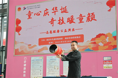 9月28日,在国庆佳节即将到来之际,南京市儿童医院团委联合南京市杂技家协会共同打造“童心庆华诞 奇技暖童颜”志愿服务慰问活动。杂技艺术家们凭借高超的技艺,为孩子们送去节日祝福与欢笑,用艺术温情勾勒出治愈人心的温暖图景。