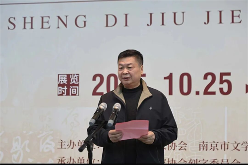 刘灿铭介绍展览情况并宣读获奖作者名单