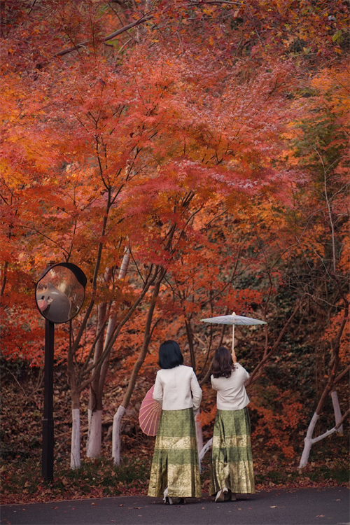 上期的“枫情预告”的余韵犹在,栖霞山又美出了新高度!一场秋凉过后,漫山枫叶像被点燃的火焰——鸡爪槭的嫣红、枫香的橙红、乌桕的绛紫交织错落,从山脚蔓延至山腰,红意铺天盖地,置身其间,仿佛闯入大自然的调色盘。古寺红墙映红枫,明镜湖波载丹霞,如此盛景,让摄影者手中的快门声此起彼伏。