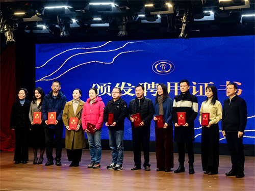 冯雯兰与陈政共同为成员颁发聘用证书。