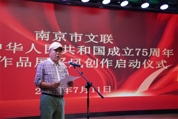 7月11日,南京市文联庆祝中华人民共和国成立75周年艺术作品展采风创作启动仪式在市文联2楼小剧场举行。南京市文联党组书记、常务副主席陈政宣布采风创作正式启动,启动仪式由南京市文联党组成员、副主席李志平主持。