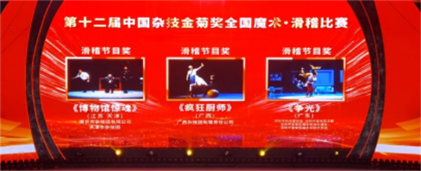 6月22日,第十二届中国杂技金菊奖全国魔术·滑稽比赛决赛在深圳欢乐谷落幕,由南京市文投集团、南京市演艺集团旗下南京市杂技团创排的滑稽节目《博物馆惊魂》成功摘得中国杂技金菊奖。