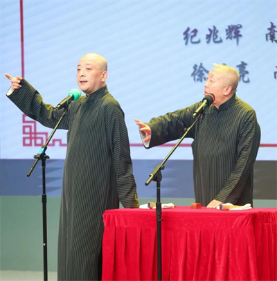 醒木一方,快板一响,逗捧就位,妙趣横生,说学逗唱,其乐无穷。第五个节目是由市曲协副主席纪兆辉、市曲协理事徐世亮带来的相声《礼仪漫谈》。