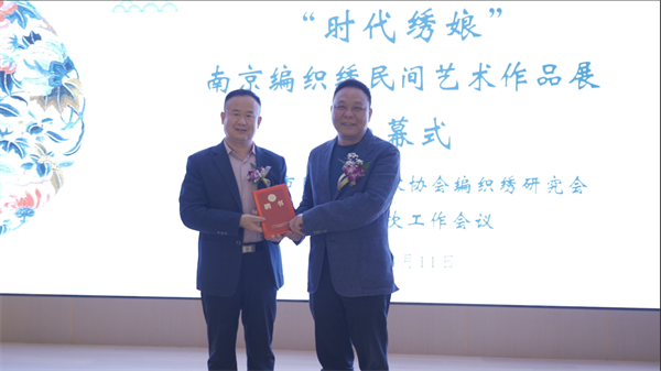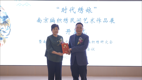 2023年4月11日,由南京市民间文艺家协会主办,南京市民间文艺家协会编织绣研究会、南京师范大学社会发展学院文博系、凤凰书城承办,南京市鼓楼区民间文艺家协会、南开南京校友会、南京市金陵校友投资促进服务中心、南京市艺术收藏研究会、南京师范大学“天工承艺”非遗传承团队、南京师范大学厚生志愿者服务中心协办的“时代绣娘”南京编织绣民间艺术作品展在南京凤凰美术馆隆重开幕。南京市文联党组书记、常务副主席任家龙为展览揭幕,并为编织绣研究会的会长、副会长、秘书长、副秘书长与理事颁发聘书。