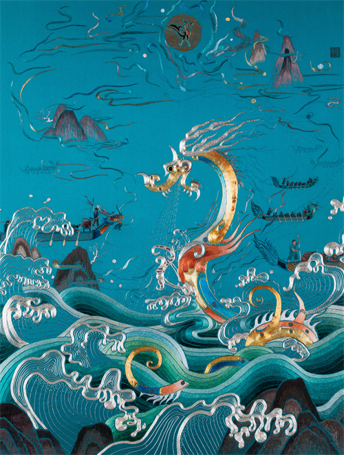 韦秀玉 李重阳 蔡嘉忻 张星宇 林季蕊 钱冬梅 刺绣《龙腾凤翥》