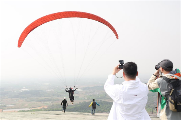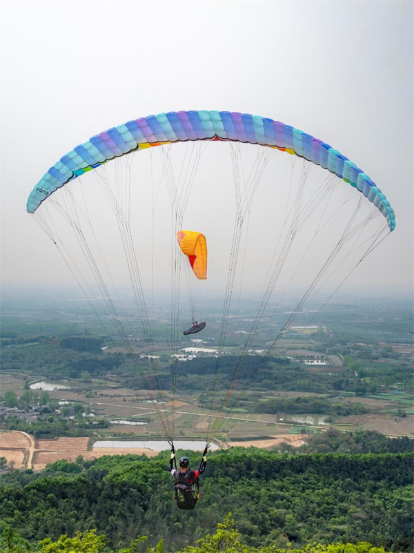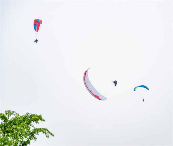 谁说乡村不够潮?九华的滑翔伞基地直接刷屏!长焦追拍“空中舞者”,俯拍视角下茶园如绿毯铺展,妥妥的大片既视感!