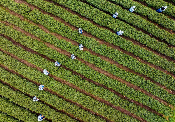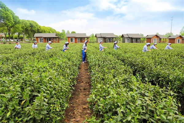 采茶小姐姐们穿梭在茶树间,熟练地采摘着鲜嫩的茶芽,那专注的神情仿佛在与大自然对话,辛勤劳作的身影与嫩绿的茶园融为一体。