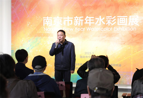 2023年3月11日,由南京市美术家协会、南京市宁海中学、南京市美协水彩画研究会共同主办的“2023南京市新年水彩画展”在南京市宁海中学美术馆隆重举行。南京市文联党组书记、常务副主席任家龙宣布展览开幕,南京市宁海中学校长刘宏业在开幕式上致辞。宁海中学艺教处主任朱云,以及南京艺术学院、南京师范大学等高校的教师,袁贞秋、丁兆成、朱敦俭、陆长根、杨罗丹、涂蓉蓉等南京水彩画界的资深老艺术家等出席开幕式。