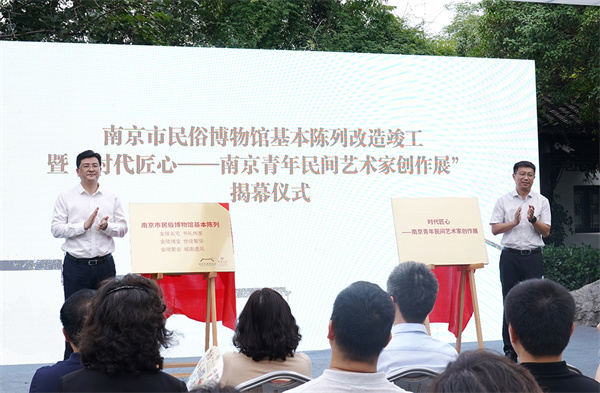 (南京市博物总馆党委书记、馆长许强为南京市民俗博物馆基本陈列改造竣工揭牌,南京市文学艺术界联合会党组成员、副主席李志平为“时代匠心——南京青年民间艺术家创作展”揭幕)
