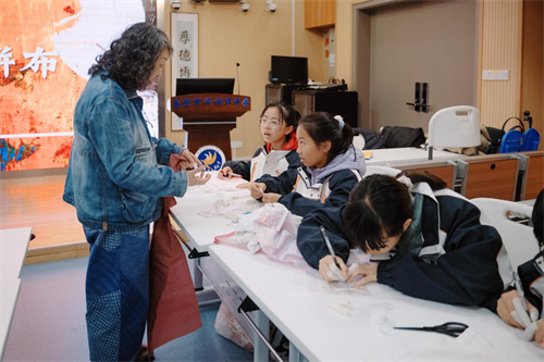 12月6日,南京美术馆“艺术一小时”人文美学体验课堂携手科利华中学科中讲坛,为同学们带来一场精彩的艺术课堂。本期“艺术一小时”人文美学体验课堂邀请了中国民间文艺家协会会员、江苏省民间文艺家协会会员、南京市民间文艺家协会会员、著名拼布艺术家张绍玲为科利华中学学生带来拼布艺术体验。