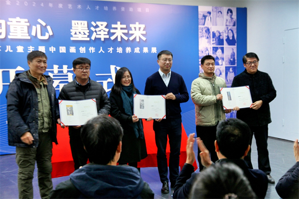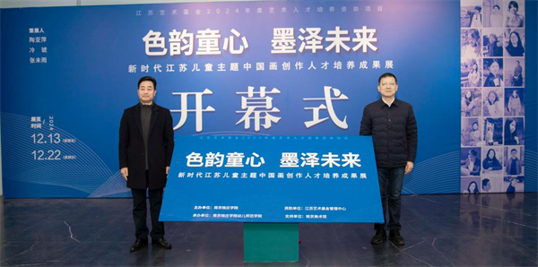 12月14日下午,江苏艺术基金2024年度艺术人才培养资助项目“色韵童心 墨泽未来——新时代江苏儿童主题中国画创作人才培养”成果展在南京美术馆开幕。此次展览由南京晓庄学院主办,集中展示了中国画这一传统艺术形式的动人魅力,为新时代儿童主题中国画创作人才培养提供了新思考。南京晓庄学院校长张志华,南京市文联党组书记、常务副主席陈政共同为展览揭幕。