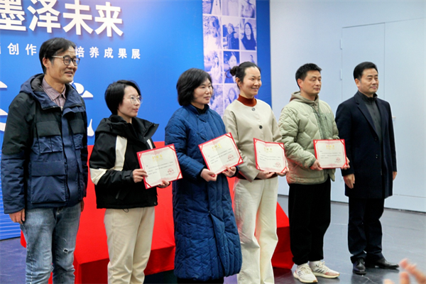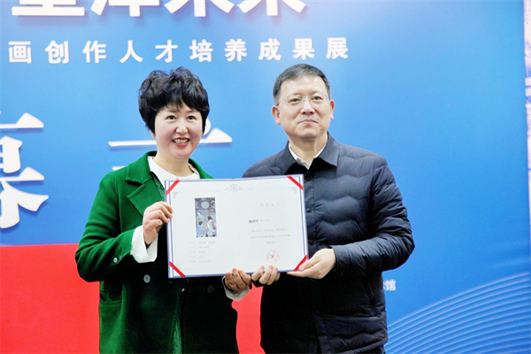 南京市文联党组成员、副主席李志平,江苏省美术馆副馆长栾剑,江苏省民盟美术院副院长桑建国为冷琥、徐娜、廉亚威颁发收藏证书