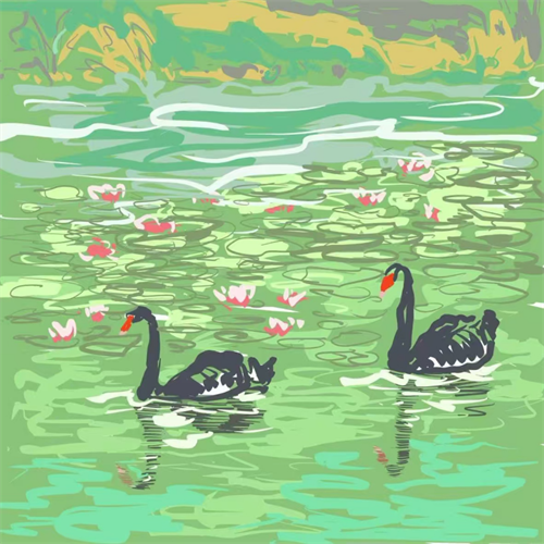 我的创作是一场媒介的对话:木刻的天然粗粝与数字技术的精确理性在此交融。受霍克尼用iPad颠覆绘画的启发,我将绝版木刻的“不可逆”与数字图层的“可编辑”置于同一时空——木纹刀痕如光阴褶皱,逐版消逝的套色凝固成记忆切片,而屏幕上的草稿层却以弹性笔触对抗消逝,在删改中重构诗意。而我试图在木纹与像素的交叠中,捕捉一种更复杂的温度。