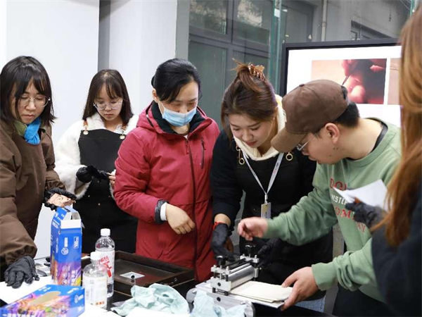 版画工坊作为“艺版·艺眼”公教季的压轴场次,以“百年回响”为主题,带观众走进铜版画的瑰丽世界。孙文烨老师通过展示中外大师经典作品,解析铜版画的刻制技艺与历史脉络。在体验环节,参与者亲手尝试雕版、上墨、拓印,复刻出细腻的线条与层次分明的肌理。一张张亲手制作的版画,承载着艺术的温度。