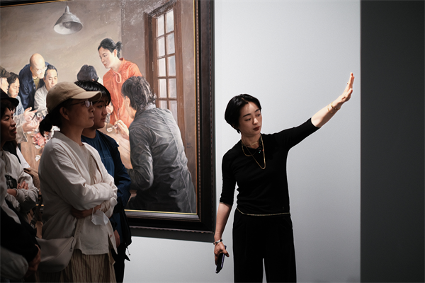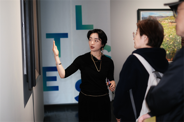 本次导赏活动特邀参展艺术家陈子君教授担任“艺术向导”。陈教授以自身创作经验为切入点,带领20位艺术爱好者深入剖析油画笔触的技法玄机与作品背后的时代隐喻。从画面肌理的细节处理到艺术家的创作哲学,参与者不仅感受到“画时代的呼吸”,更在互动问答中解开了对当代艺术的困惑。