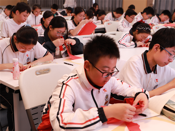 南京美术馆特邀撕纸技艺传承人翟天麟老师走进科利华中学,为学生们带来一场别开生面的撕纸艺术体验。活动中,翟天麟老师以“以手代剪”的撕纸绝技为核心,将南京城墙的厚重历史融入青少年美育活动,带领学生开启了一场与六朝古都的“纸上对话”。学生们以南京明城墙为灵感,将历史轮廓与个人想象交融——有人撕出藤蔓攀附的沧桑墙垣,有人用镂空表现城砖的斑驳肌理,更有人为城墙“添翼”,撕出飞鸟掠过城楼的动态剪影。