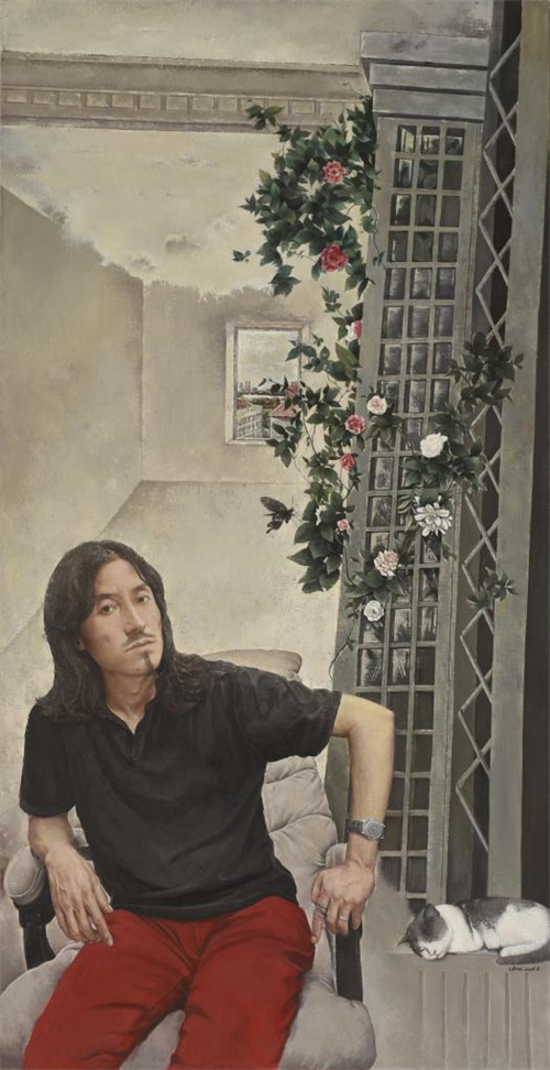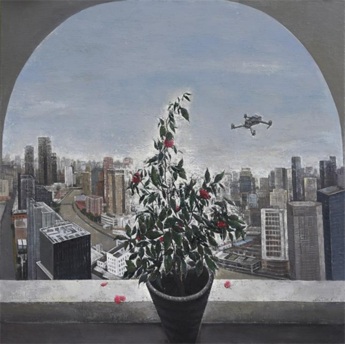 《工作室的茶花》 100x100cm 布面油彩 2024