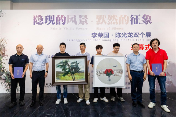 8月8日下午,由南京艺术学院、南京晓庄学院、江苏省油画学会、江苏油画雕塑院主办,南京艺术学院艺术创作与实践处、南京晓庄学院美术学院、南京美术馆承办的“隐现的风景、默然的征象——李荣国、陈光龙双个展”在南京美术馆拉开帷幕。江苏省教育厅二级巡视员张鲤鲤;著名油画家、江苏省油画学会名誉主席沈行工;中国美协副主席、江苏省美协副主席、南京大学教授、博导陆庆龙;江苏省美术馆原馆长、江苏省文联副主席、江苏省美协副主席、南京市美协主席徐惠泉;中国美协第四届油画艺委会副主任、江苏省油画学会名誉主席陈坚;浙江水利水电学院原校长叶舟;南京市文联党组书记、常务副主席陈政,南京市文联党组成员、副主席李志平,南京市文联原党组成员、副主席濮存周;南京艺术学院党委书记俞锋,南京艺术学院党委副书记、校长张凌浩,南京艺术学院原党委书记米如群,南京艺术学院原校长、江苏省美协副主席刘伟冬,南京艺术学院副校长苗雨,南京艺术学院党委常委、副校长吕少卿、邓硕,南京艺术学院原副校长崔雄、何晓佑、吕斌、张承志;南京晓庄学院党委书记张策华,南京晓庄学院党委副书记易永健,南京晓庄学院党委常委、宣传部部长李震等领导与嘉宾出席开幕式。此外,还有江苏省文化和旅游厅、江苏省艺术基金、人民美术出版社、江苏省国画院、江苏省现代美术馆、江苏油画雕塑院、东南大学、南京师范大学、苏州大学、江南大学、南京理工大学、金陵科技学院、南京市画院、南京市油画学会、盐城市美术家协会、盐城市油画学会等单位的领导及相关部门负责人出席活动。开幕式由南京美术馆负责人杜占军主持。